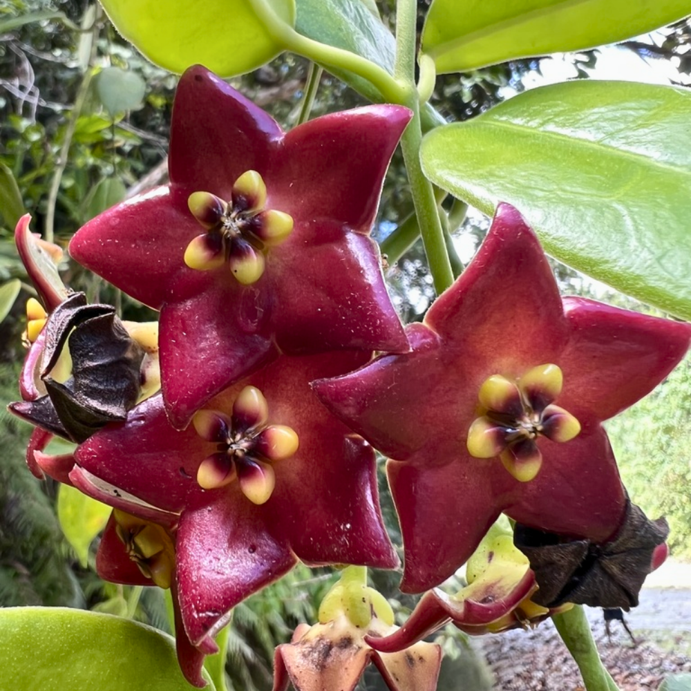 Înflorirea la Hoya guppyi este evenimentul care o transformă din plantă frumoasă în plantă de colecție. Umbelele florale apar pe pedunculi persistenți (nu-i tăiați după înflorire — vor produce flori noi an de an!), cu 15-30 de flori individuale în fiecare inflorescență.
