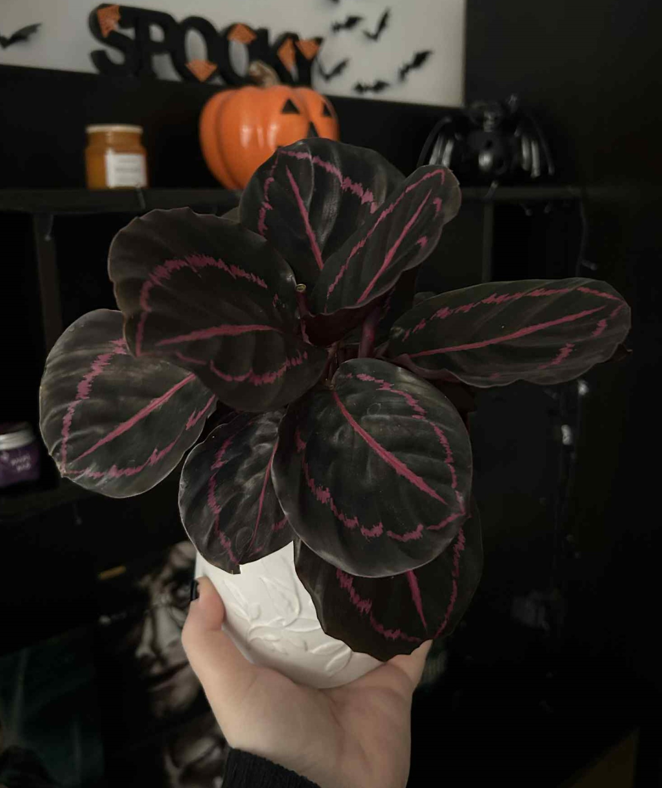 Calathea roseopicta 'Dottie' este o plantă de interior cu frunze aproape negre și nervuri roz, ideală pentru interioare elegante, unde aduce un plus de contrast și mister. Este o plantă care se roagă, seara își ridică singură frunzele - un spectacol uluitor.